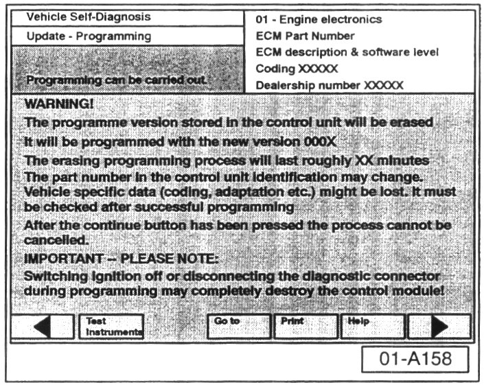 The "Update - Programming" function is only available when the inserted flashing CD level and current vehicle ECM level are different.