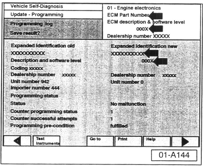 ^ ECM Part Number and old software level is still displayed at (arrows).