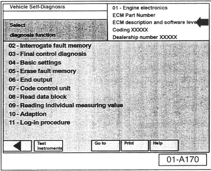 - Confirm that VAS 5051 or VAS 5052 diagnostic tool power supply is adequate and that ALL appliances with high electromagnetic radiation (i.e. mobile phones) are switched OFF.