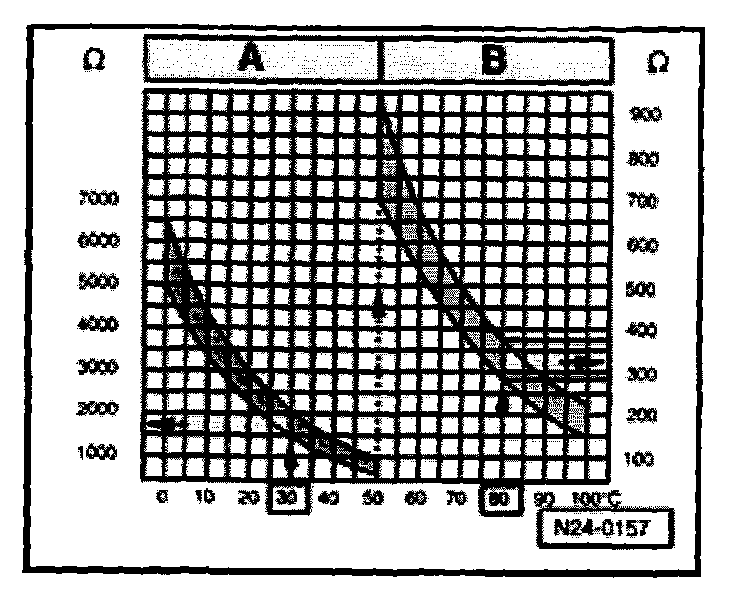 NOTE: Scale A shows resistance values for temperature range 0 to 50 °C and scale B shows the values for temperature range 50 to 100 °C.