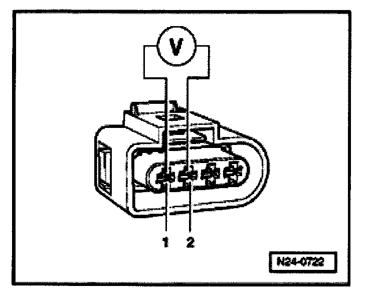 - Use adapter cables from VAG1594 to connect multimeter to terminals 1 +2 (ECM connector) for voltage measurement.