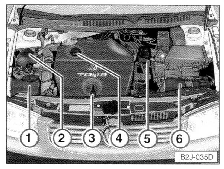 6 - Vehicle battery (protected by a cover}