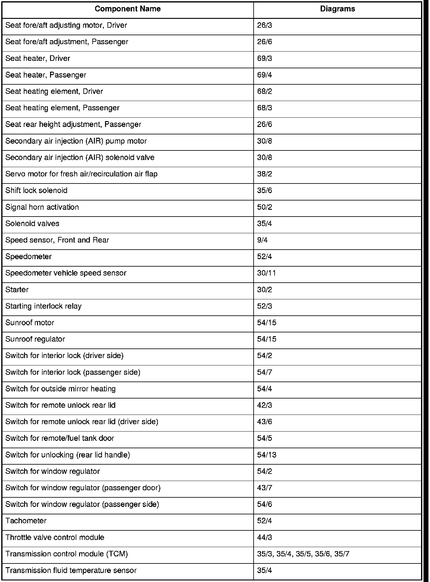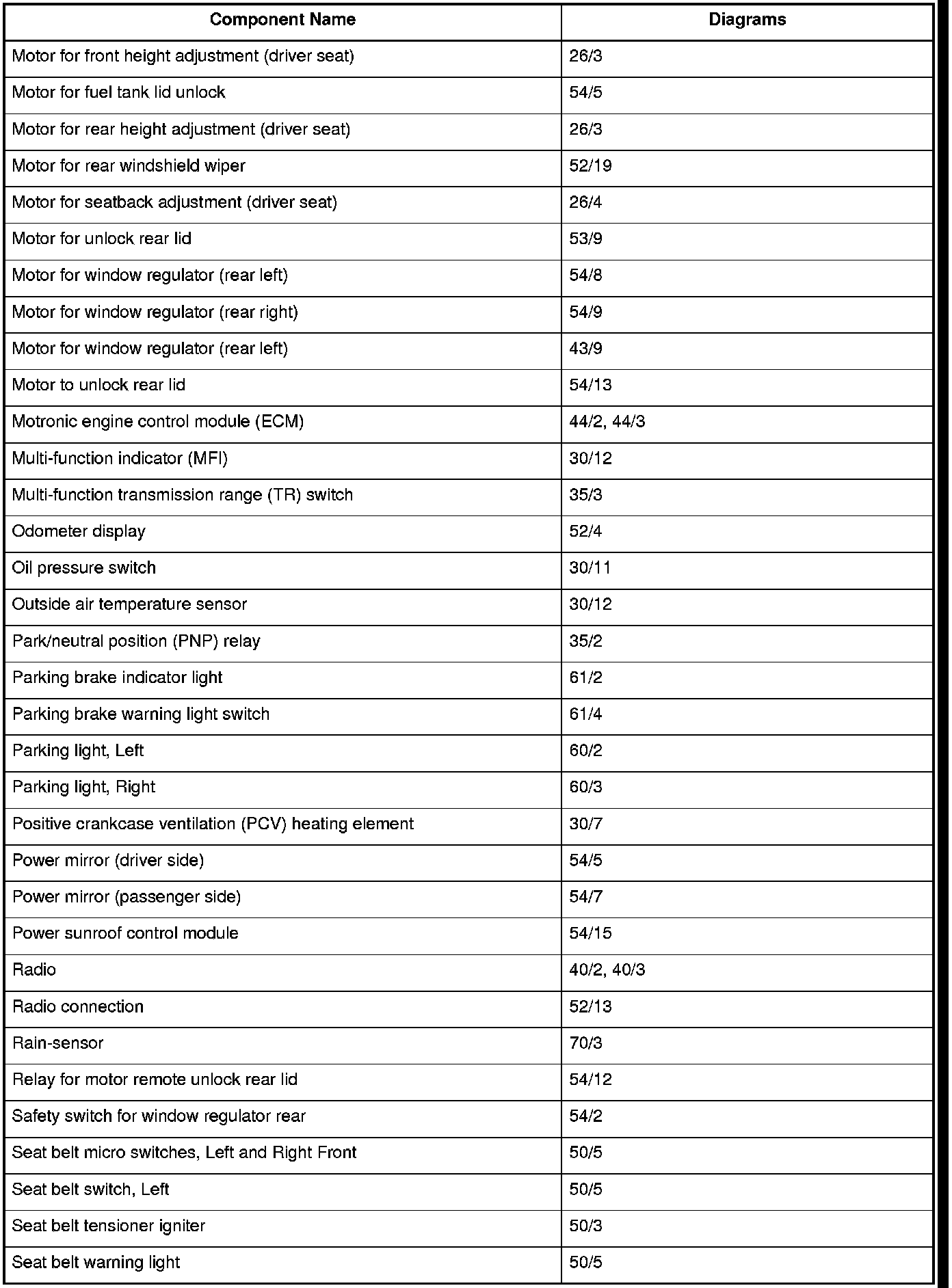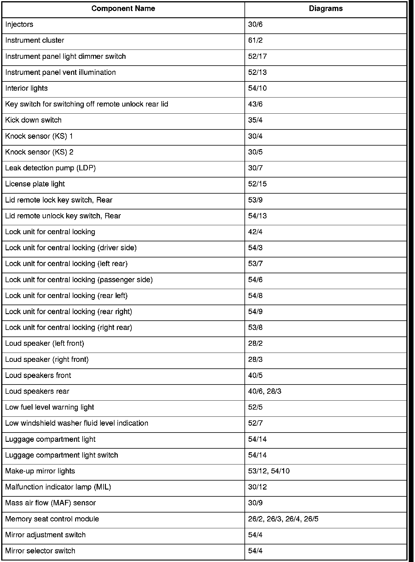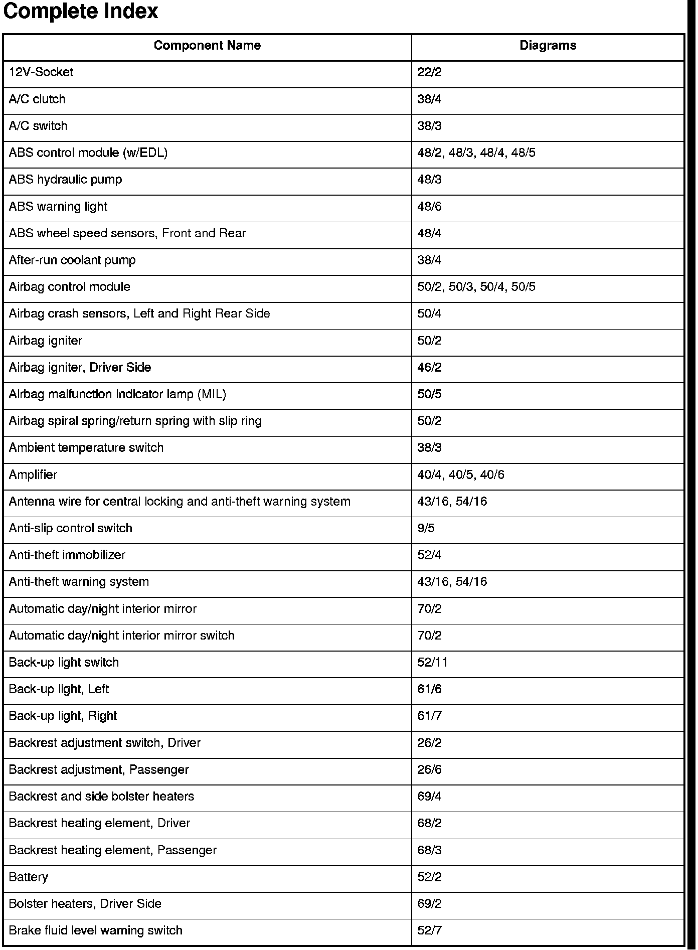 Master Diagram Index