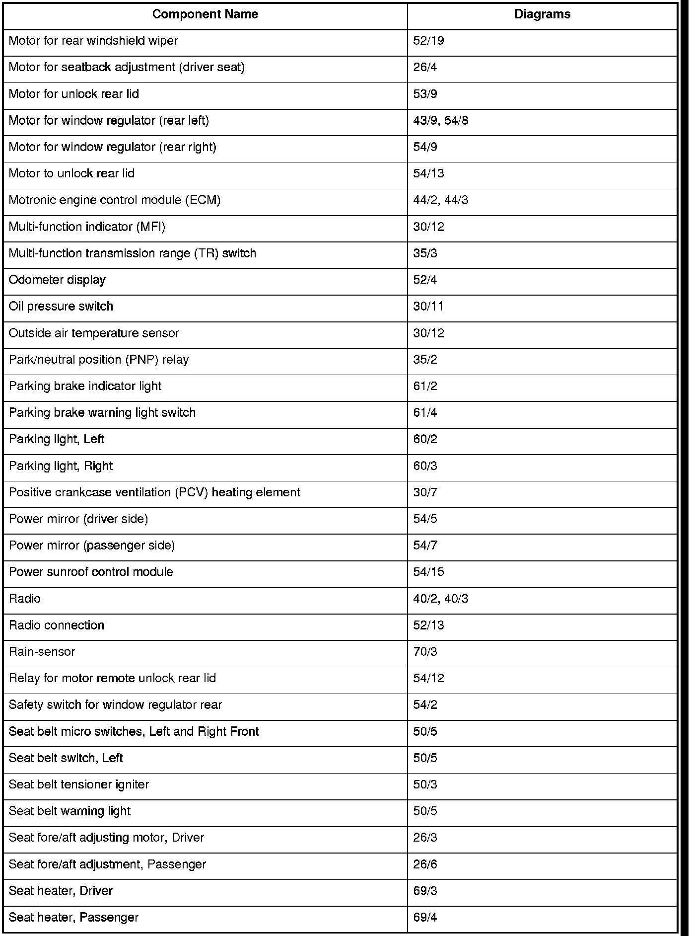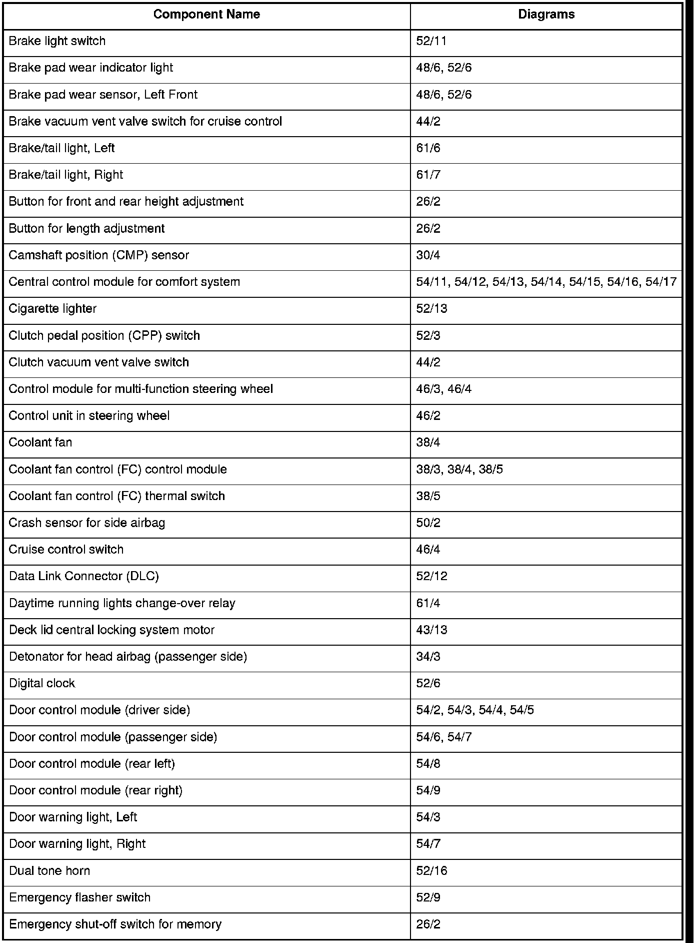 Master Diagram Index