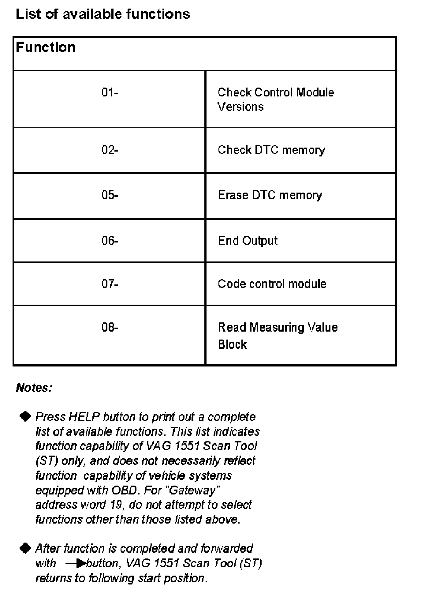 - The following description applies only to Scan Tool VAG 1551.
