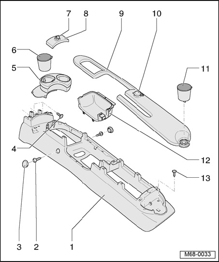 Center Console, Removing And Installing 02.01 --> 04.03