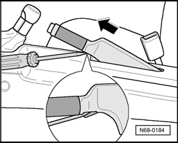 - Lift up parking brake lever, disengage trim using a screwdriver and pull off from parking brake lever toward front - arrow -.