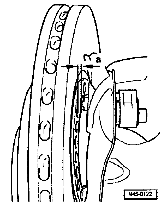 ^ Turn wheel hub and measure distance between rotor and speed sensor, dimension -a- all around.