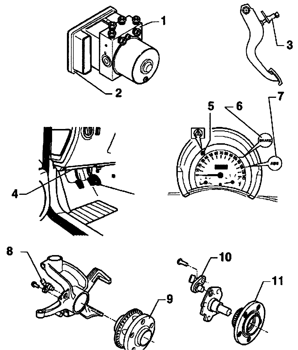 ^ Rotor and speed sensors for rear left and right-hand sides are identical