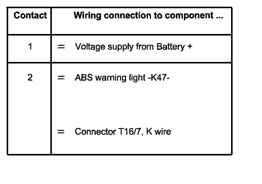 Contact 7 = K wire to contact 2 of multipin connector T47 of control module -J104-
