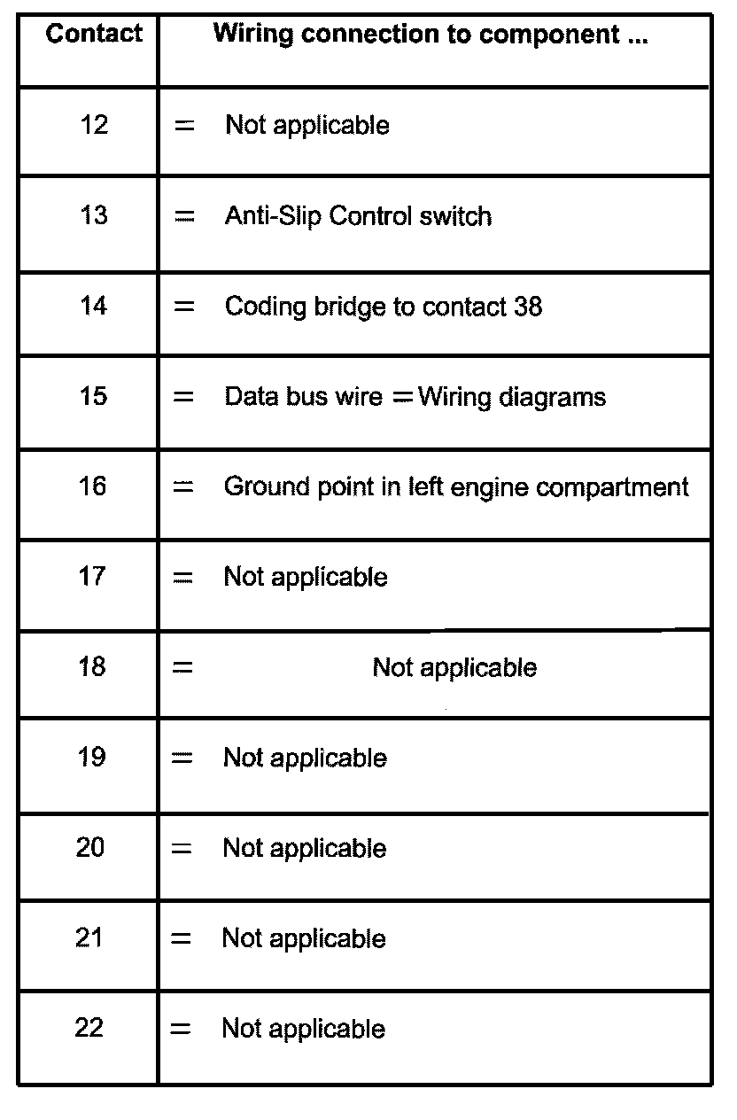 ^ If the measured figures only deviate slightly from the specifications, clean sockets and plugs of the testers and adapter cables (with contact spray G 000 700 04 ) and repeat check. Before replacing components, check wiring and connections and also, particularly for specifications of less than 10 ohms, repeat resistance check on the component.