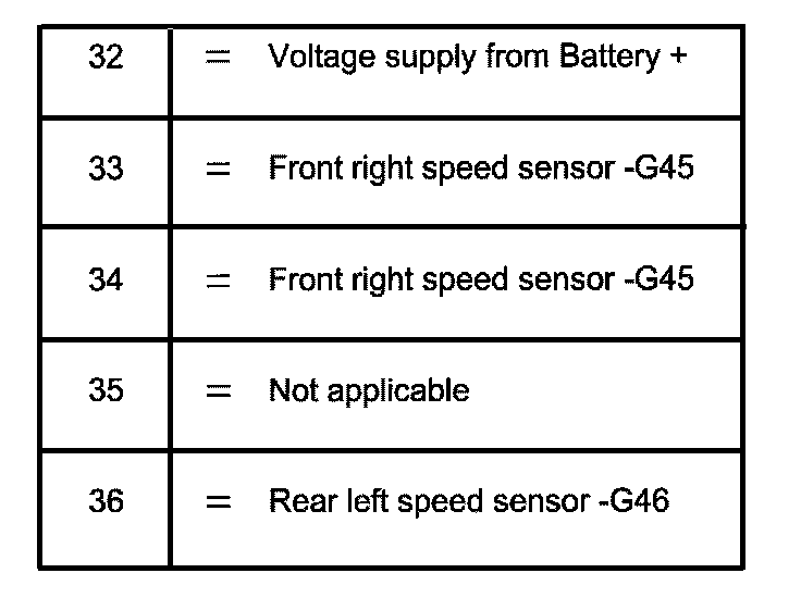 ^ The socket designations of adapter V.A.G 1598133 are identical to the control module -J104- contact designations in wiring diagram.