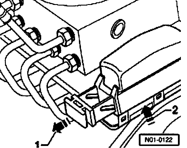^ Release control module harness connector (arrow -1-) and pull off (arrow -2-).