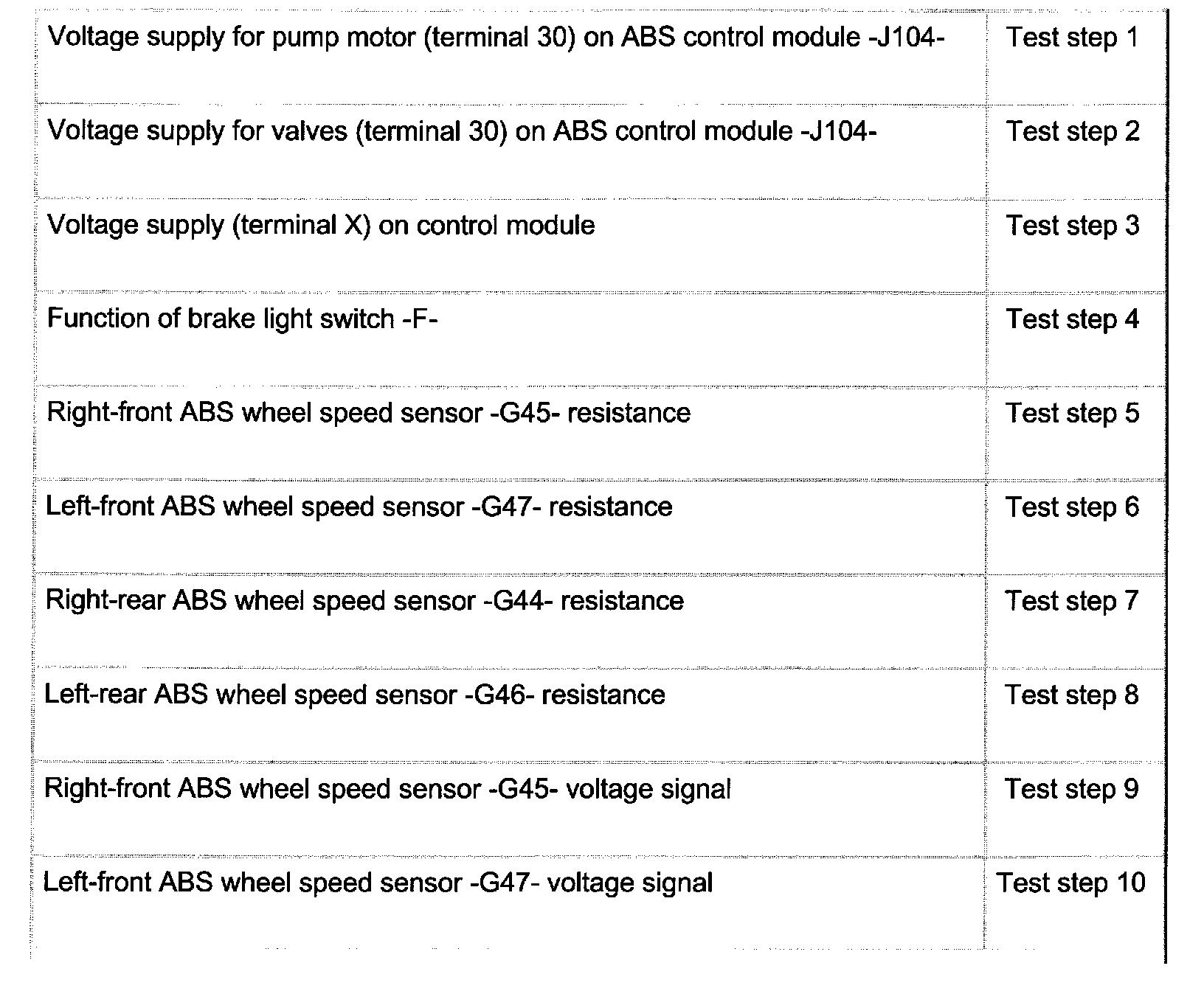 ^ The socket designations of adapter VAG1598121 are identical to ABS control module -J104- terminal designations.
