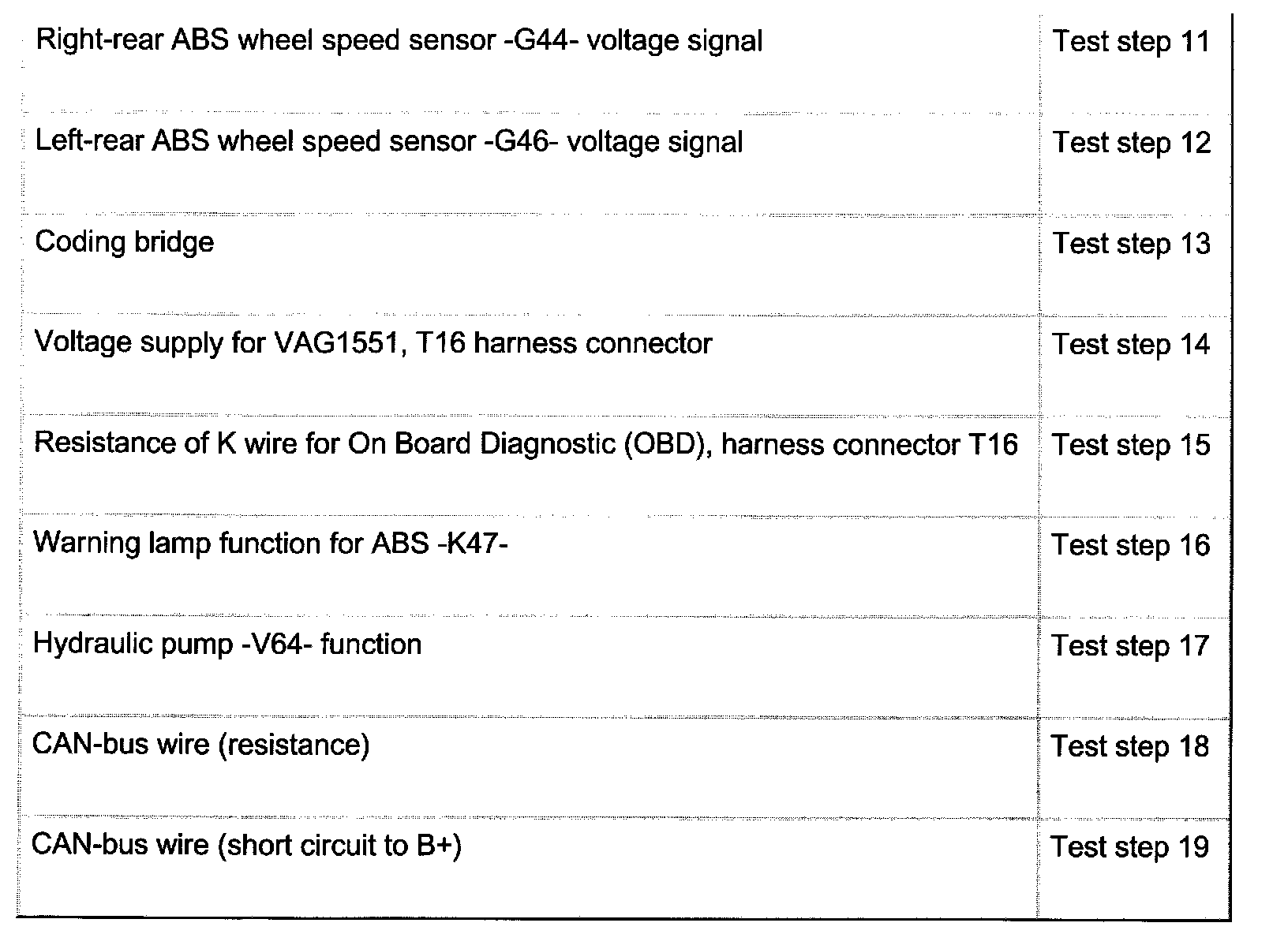 An overview of all the test steps in the Electrical test table can be found.