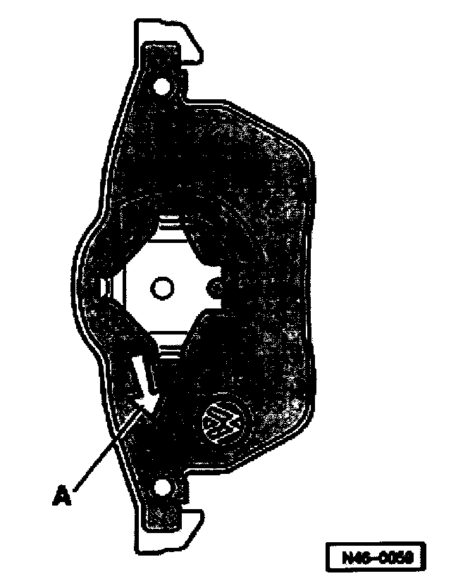 When the brake pad is installed, the arrow -A- on the brake pad backing plate must point downward.