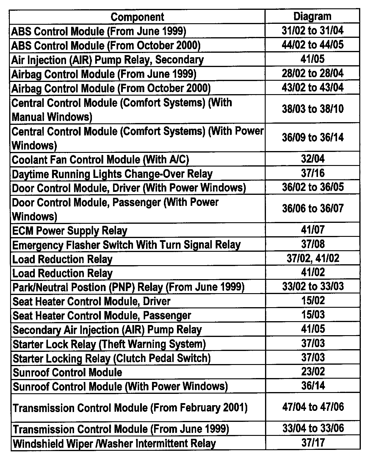 Master Diagram Index