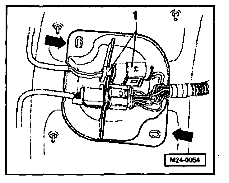 - Remove protective cover -arrows- and separate 4-pin connector (brown) -1- to oxygen sensor after catalyst (G130).