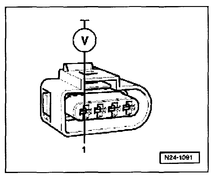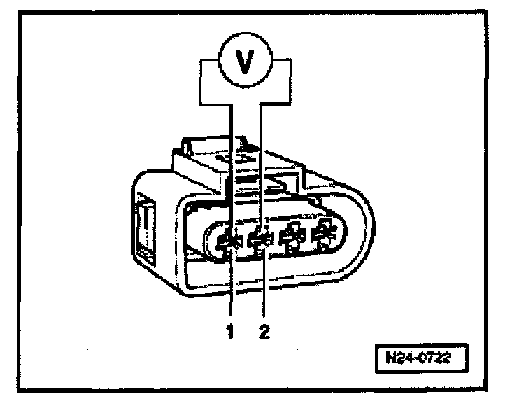 - Connect multimeter using auxiliary cables from VAG 1594 to measure voltage at terminals 1 + 2 (connector to engine control module).