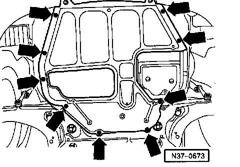 - Remove noise insulation panel (arrows).