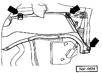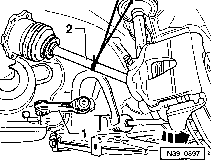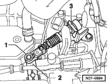 ^ Remove left coupling rod -1- from control arm and turn coupling rod upward.