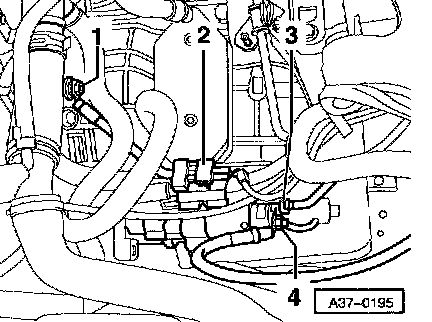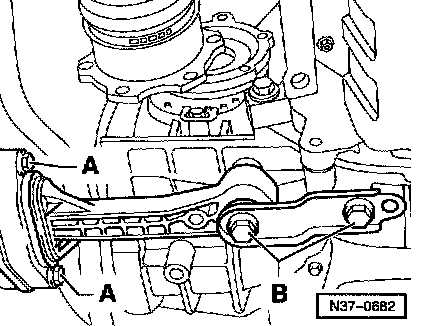 ^ Remove clip -3- at selector lever cable support bracket and remove selector lever cable.