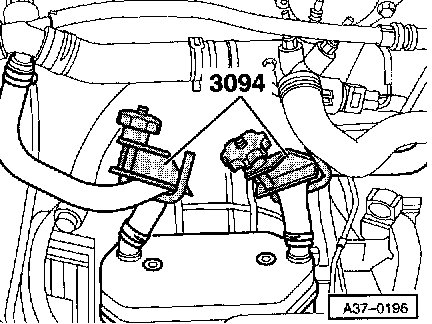 ^ Clamp-off ATF cooler hoses with tool 3094 and detach at ATF cooler.