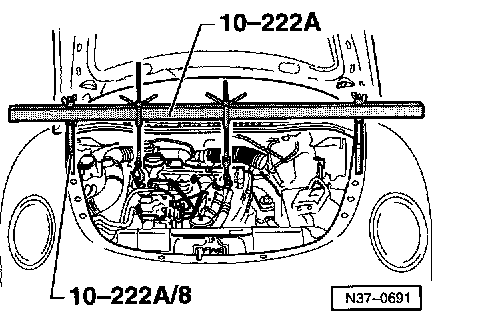 ^ Install support bar 10-222 A with legs 10-222 A/1 and support engine and transmission in this position.