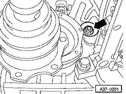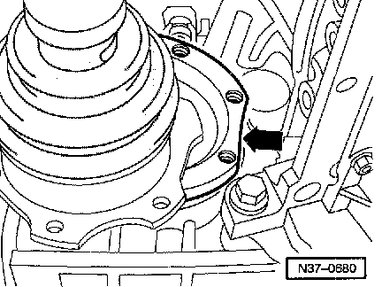 ^ Turn transmission flange to the right until flat -arrow- is vertical.