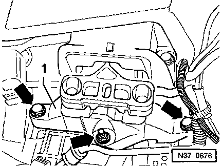 ^ Disconnect ground cable -1- from upper engine/transmission bolt.
