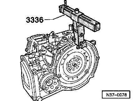 ^ Attach special tool 3336 to transmission housing flange.