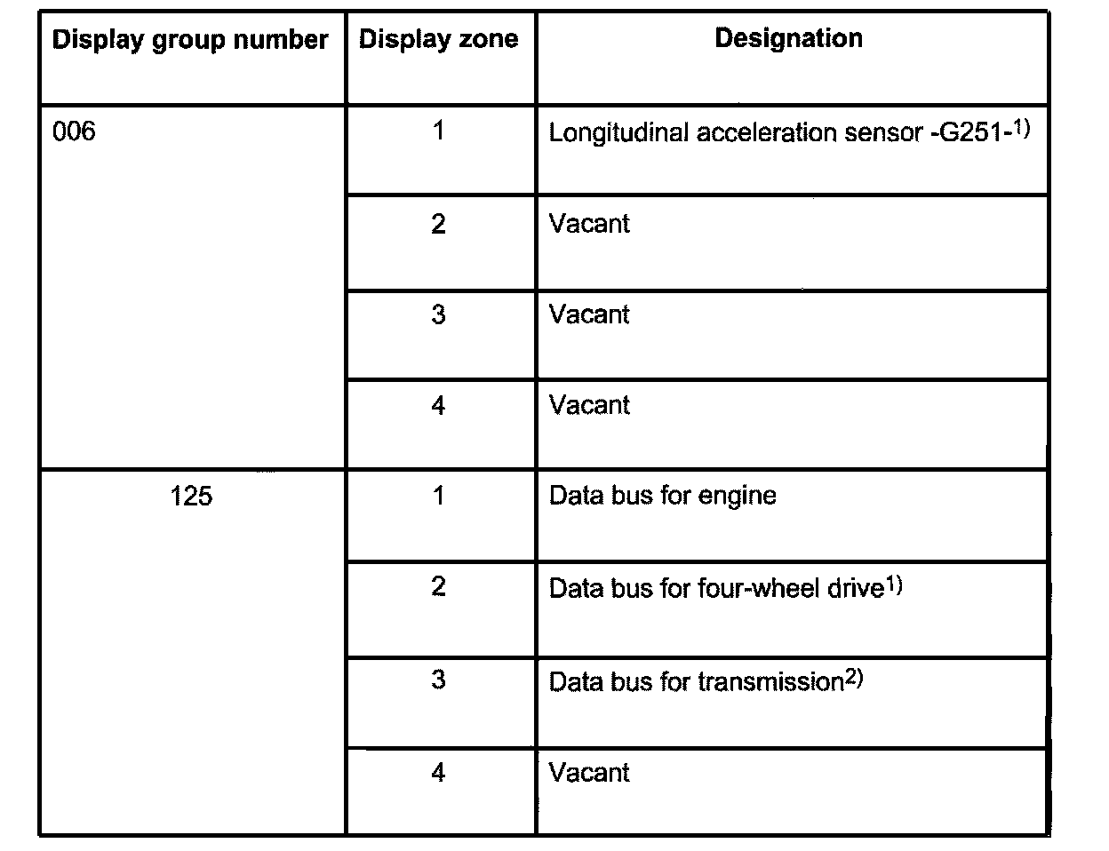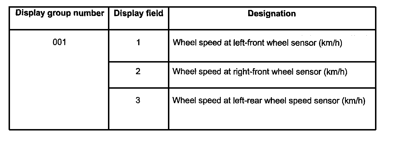 The control module can transfer a considerable amount of test data. This test data delivers information on the operational condition of the system and/or sensors connected to it. In many cases the data supplied aids the technician in both troubleshooting and corrective action. Because all the information cannot be evaluated at the same time, the test data has been summarized into single display groups, containing information which can be selected using display group numbers.