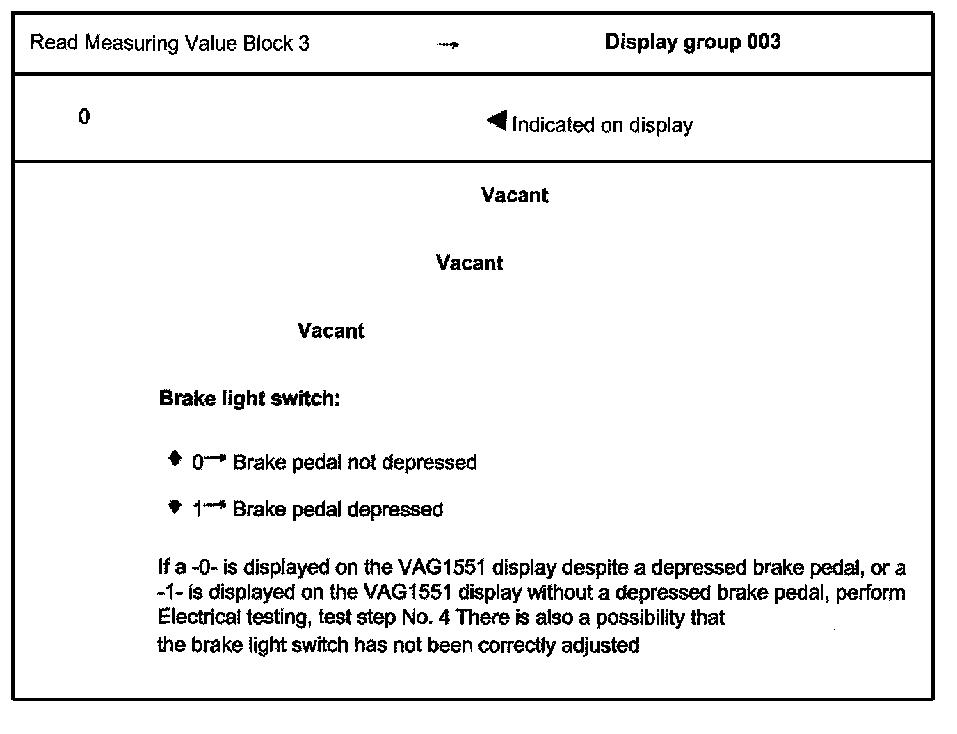 If the (arrow) button is pressed, buttons -0- and -8- ("Read Measuring Value Block") Must be pressed again to regain entry.