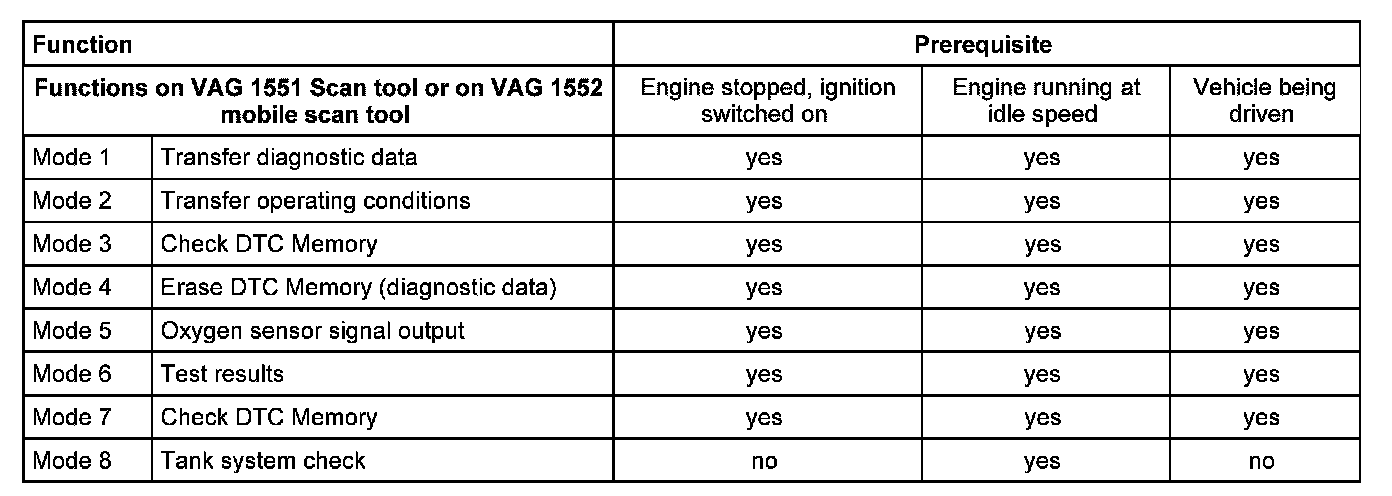 - Individual measuring value blocks can be read in mode 1. Mode 1 is not recommended for the VW specialist workshops, as this data can be read out in a far more directed form in address word 01/function 04 and function 08.