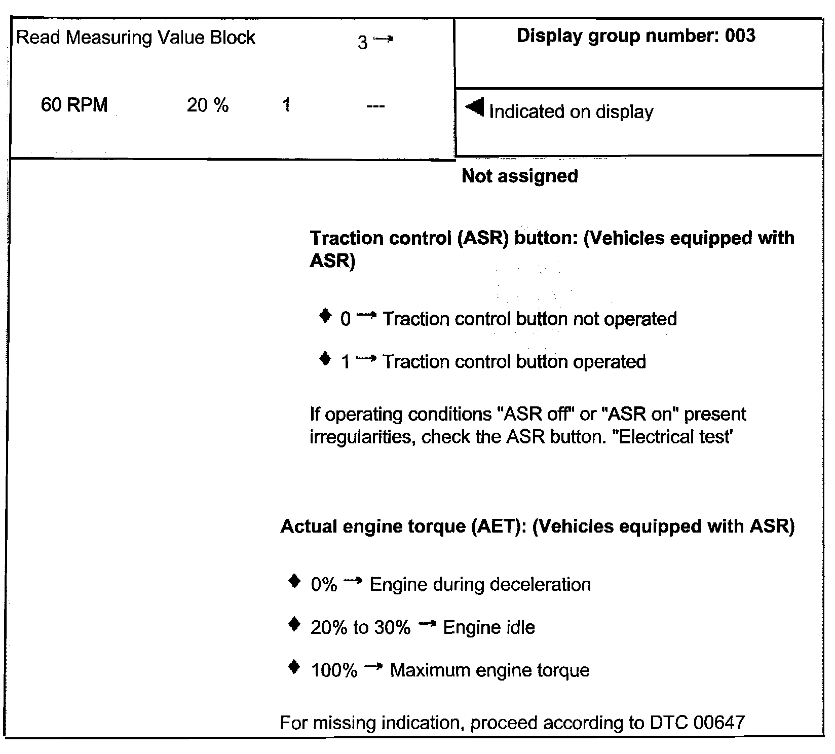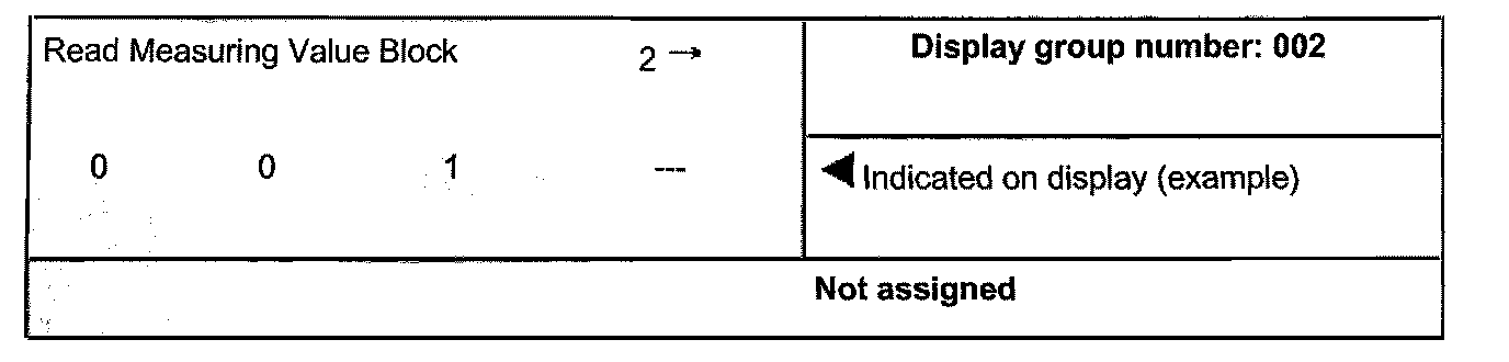Press the (arrow) button to manually enter the next display group number. After this, the work sequence "Read Measuring Value Block" must be re-initiated using buttons -0- and -8-.