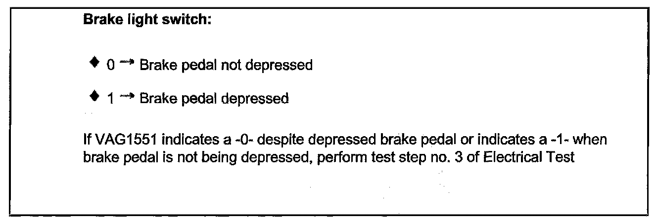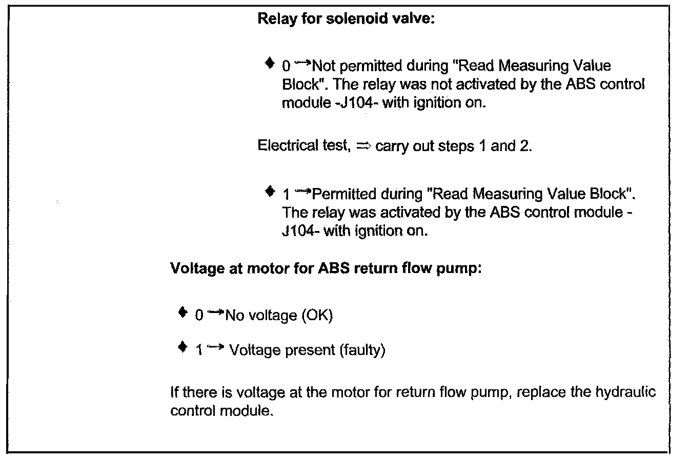 Notes: The ABS warning light -K47- and the warning light for brake system -K118- switch off. The output Diagnostic Test Mode is completed.