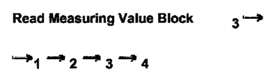 ^ Measuring value block always has 4 display fields (arrows). Values 1 to 4 in the individual display fields can be interpreted according to the following test table.