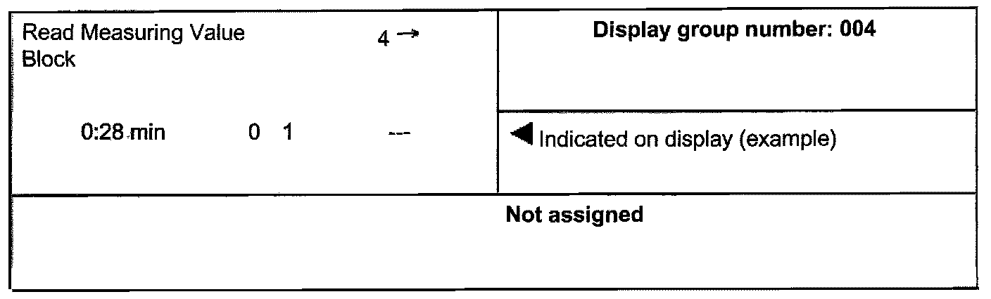 Press the -> button to manually enter the next display group number. After this, the work sequence "Read Measuring Value Block" must be re-initiated using buttons -0- and -8-.