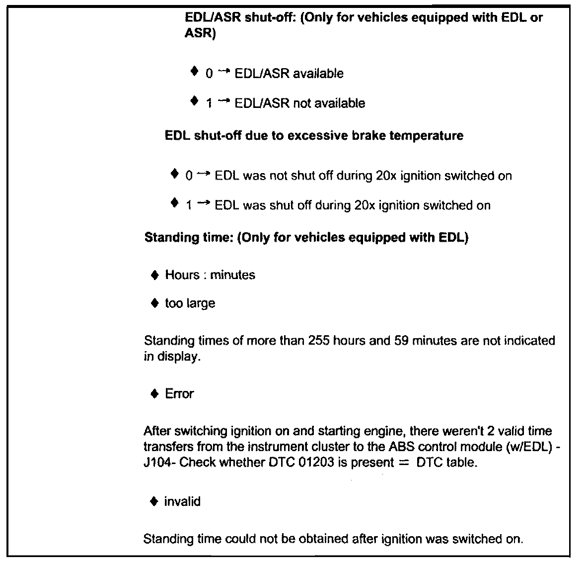 1) On Board Diagnostic (OBD) will be terminated by the ABS control module -J104- if road speed exceeds 19 km/h.