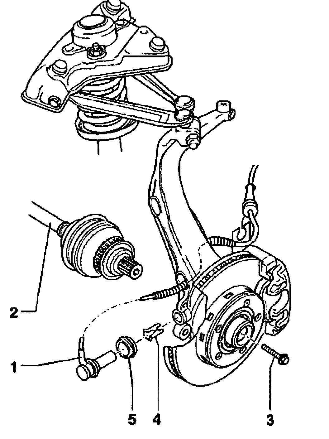 ^ Disconnect ABS wheel speed sensor out of wheel bearing housing.
