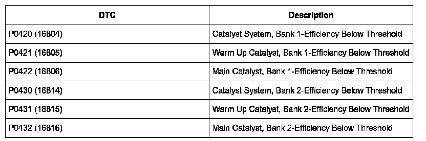 MIL ON, DTCs P0420, P0421, P0422, P0430, P0431 or P0432 Stored in ECM.