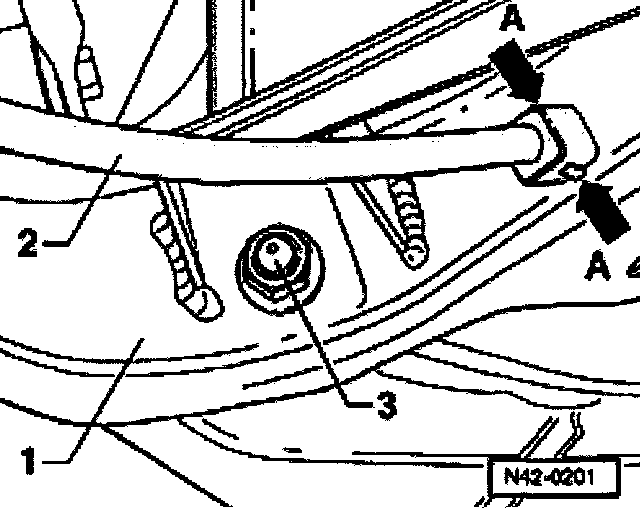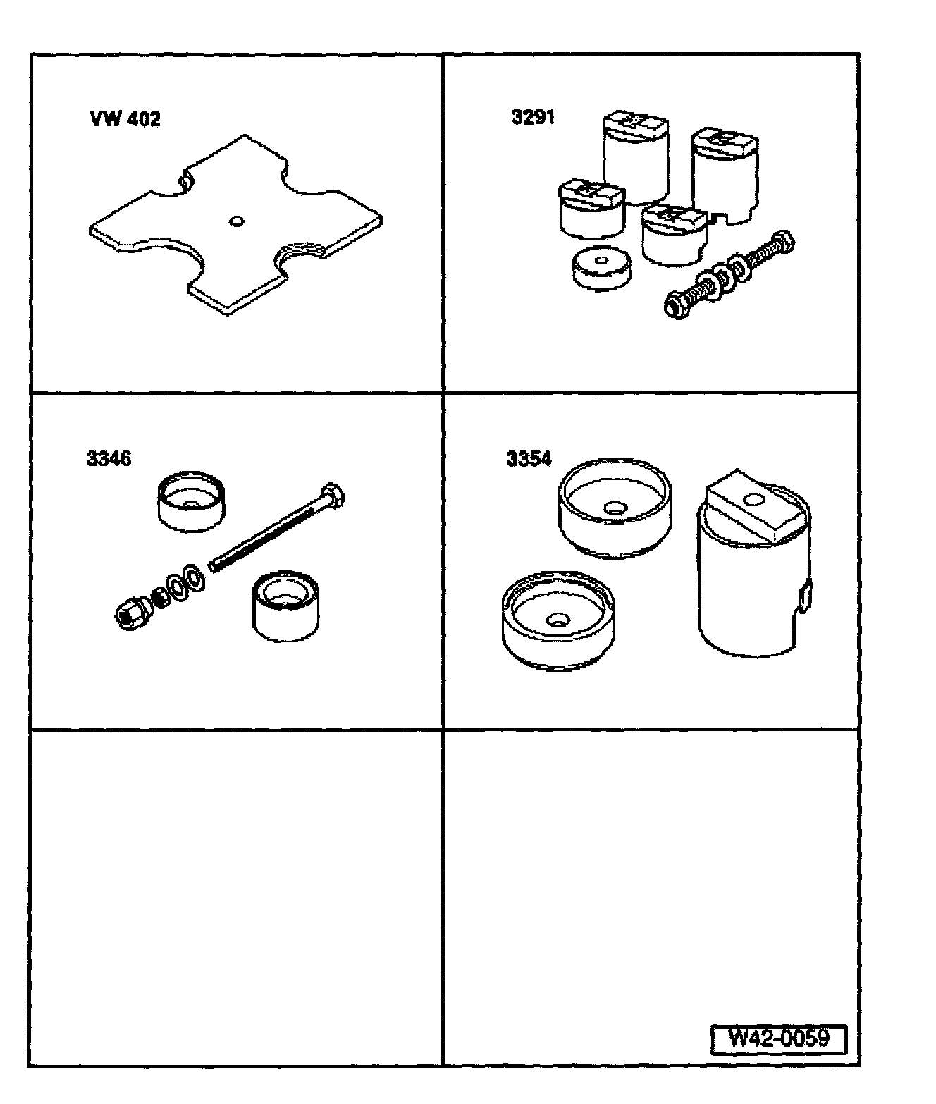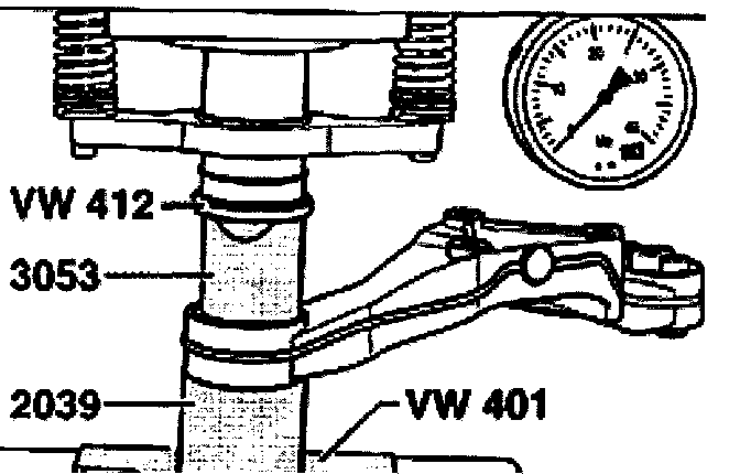 Note: Use lubricant to press in the bonded rubber mounting e.g. lubricant G 294 421 A1