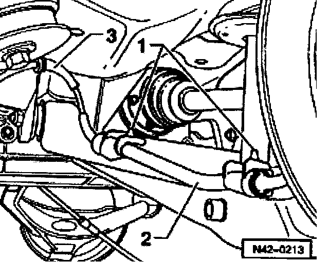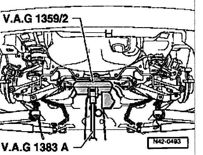 - Lower rear axle using transmission jack e.g. VAG 1383 A.