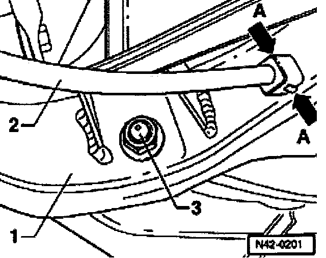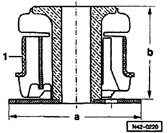 - Position bonded rubber mounting so that one of the rubber nipples -1- on illustration N42-0225 aligns with marking -arrow-.