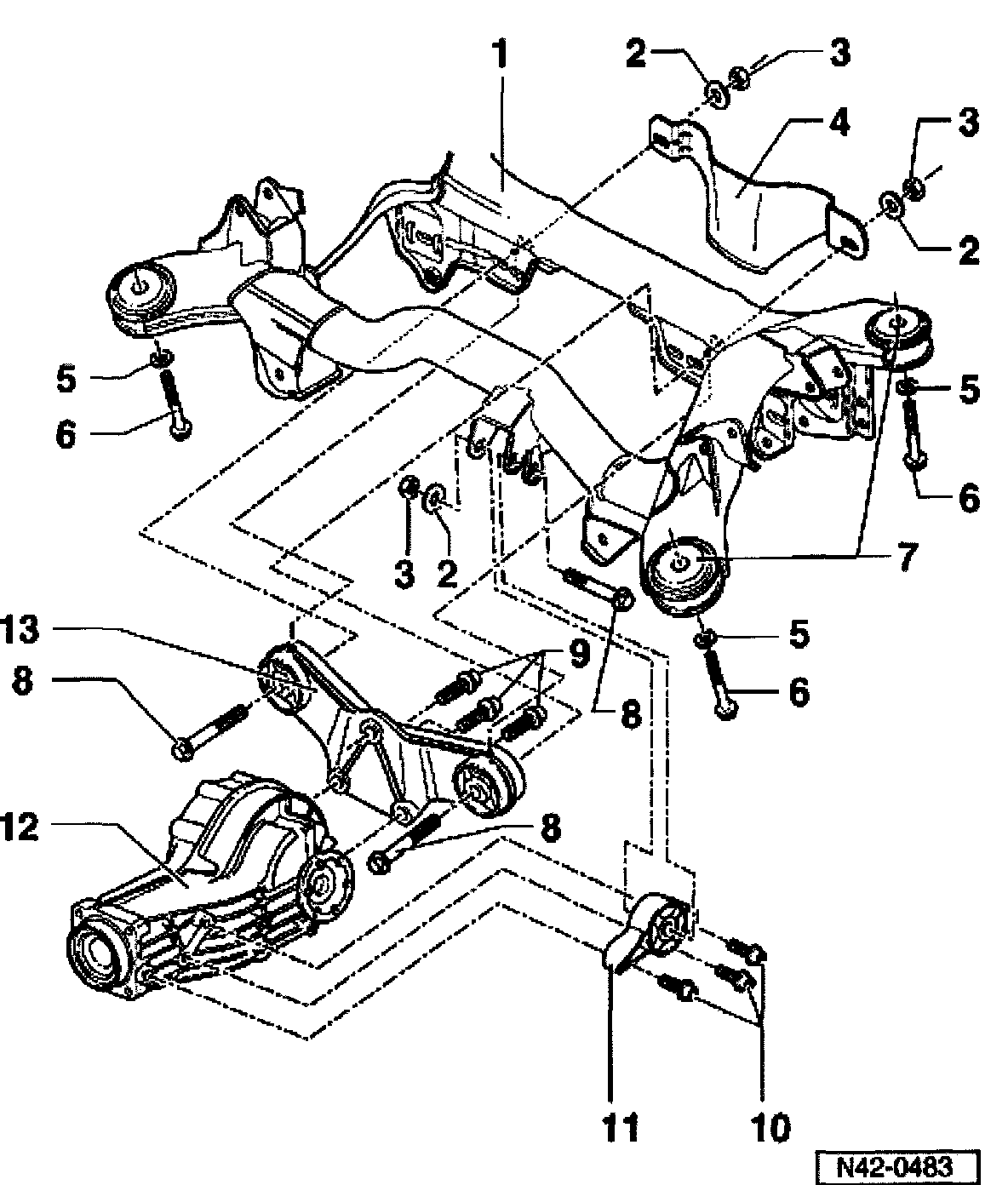 The bonded rubber mountings can only be removed and installed with the subframe lowered.