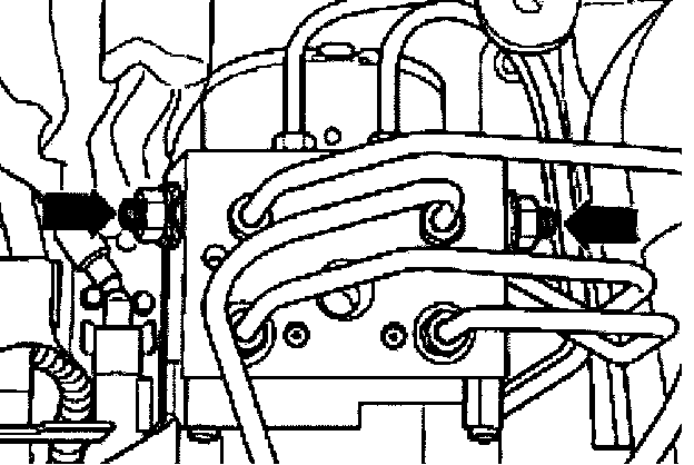 ^ Disconnect brake lines on the hydraulic unit.