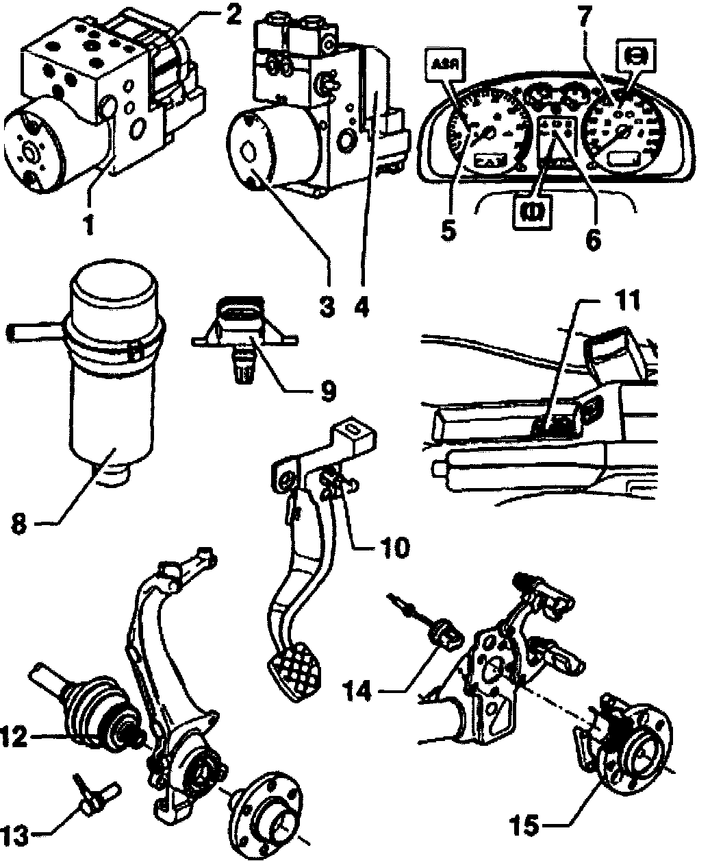 ABS/EDL/ASR Bosch 5.3, electrical/electronic components and installed positions