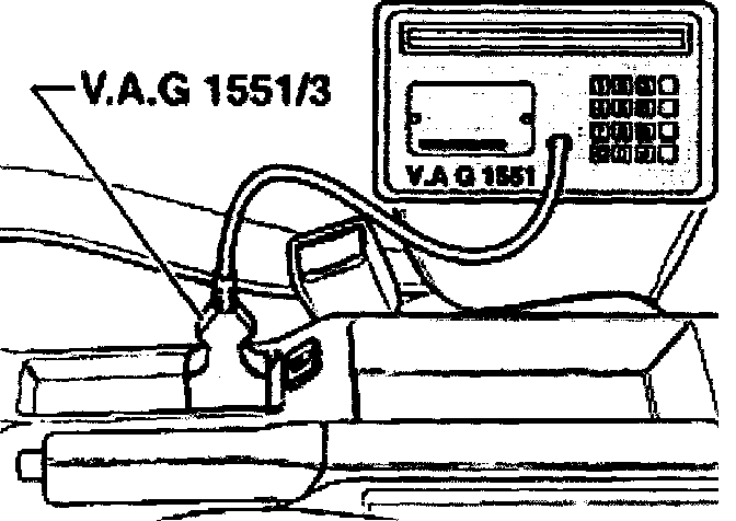 ^ Connect VAG1551 Scan Tool (ST) to Data Link Connector (DLC) using VAG1551/3 diagnostic cable with ignition switched off.
