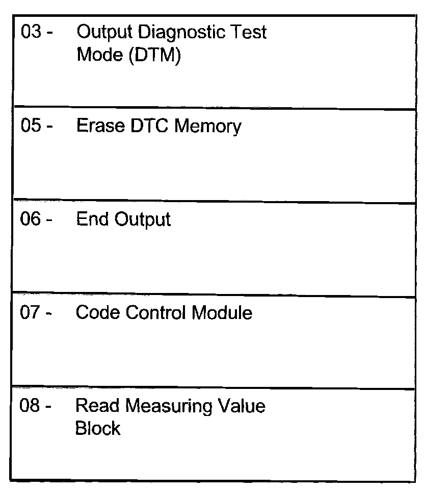 If the control module identification does not appear; Press buttons -0- and -1- (01 is the address word for "Check Control Module Version").