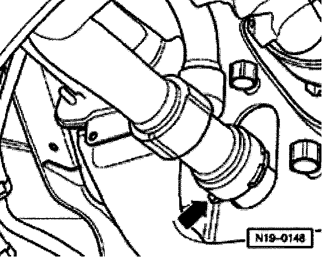 - Loosen coolant hose on heater core and pull back hose sufficiently so that the bleed hole in coolant hose (arrow) is no longer covered by the connecting piece.